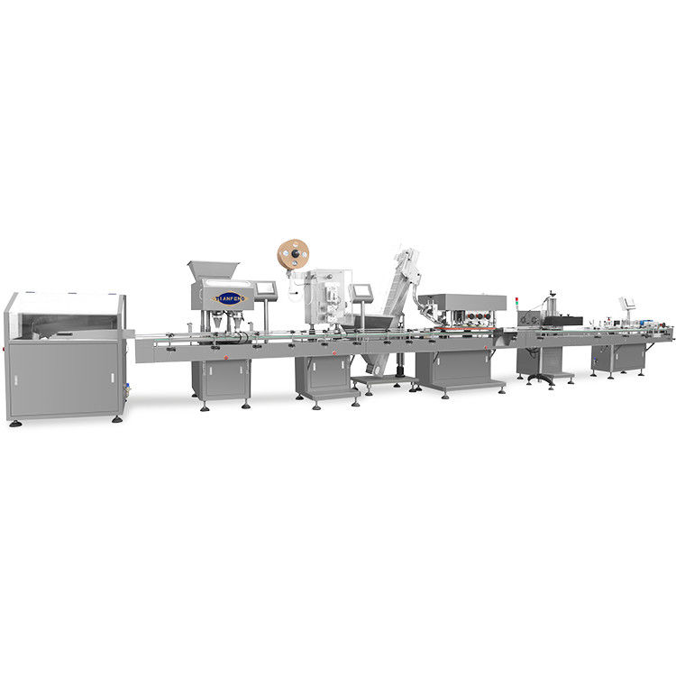 Jf-a160-16 lijn van Korrel wordt de tellende bottelende verpakkende linkageproduction samengesteld uit fles jf-A160 decodeert, de elektronische tellende machine van JF16, automatische desiccantinserter jf-C120 (katoen inserter of document inserter). Jf-D902 cappingscrewing machine, jf-2 inductieverzegelaar, jf-201 rond bekwamer bottlesidegezicht (codagemachine)